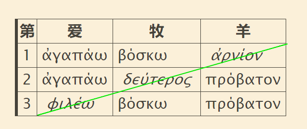 当然, 大家不必完全同意我的解释, 但不管怎样, 只提爱的变化, 不提牧和羊的都一定是找错方向了.